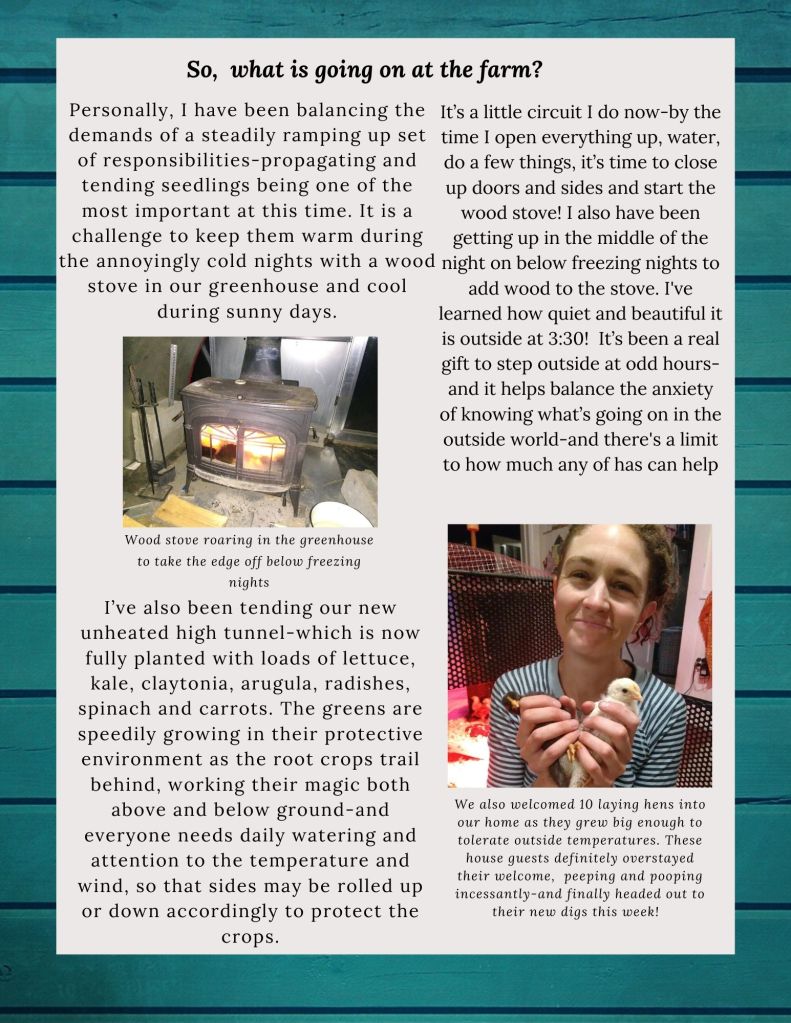 April 2020 Newsletter Posted byCotyledon FarmApril 23, 2020Posted inUncategorized Discover more from Cotyledon Vegetable Farm Subscribe to get the latest posts sent to your email. Type your email… Subscribe Share this: Click to share on X (Opens in new window) X Click to share on Facebook (Opens in new window) Facebook Like Loading...